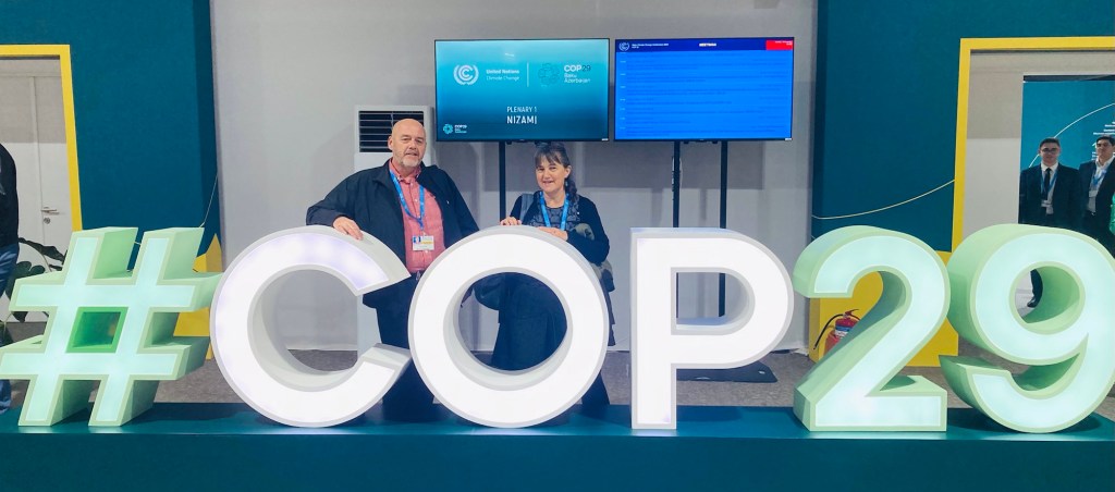 Several reps gathered for a coffee and chat straight after this meeting (knowing the queues get VERY long later…) and we shared experiences from our own unions and the way we operate. UK union reps then sent a message through to the UK negotiators requesting detail on their announcements made yesterday around their “nationally determined contributions” (NDCs) to the Paris agreement to stick to 1.5. The answer came back later that the detail (in which hopefully we won’t find the devil!) will be announced by February 2025. However, according to definitions within COP agreements, and mentioned by Bert in our meeting reported here next, this should not simply be an announcement but rather a social dialogue that we are able to feed into; it should not come to us as a surprise.