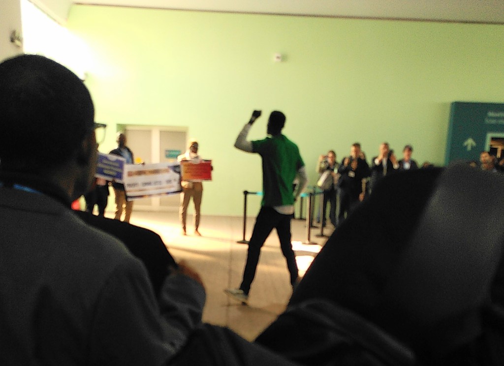 Darren and I found a space on the ever more crowded floor so that she could interview me for her blog and newsletters on climate education. After that we sat and shared sandwiches and fruit and discussed our lives and countries. Here is a snapshot of Darren’s experience in Uganda as an investigative journalist and human rights activist; we sometimes think we are brave when we take on people’s issues as trade unionists but when you hear Darren’s stories you start to understand what the word “brave” really means: