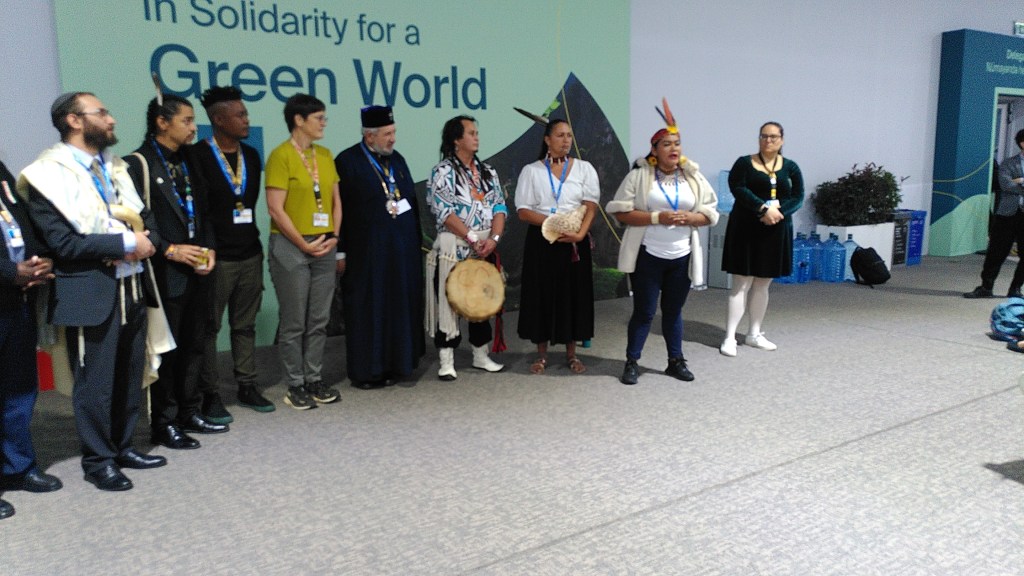 Before heading to the coffee area to sit on the floor and send Ed and Kerry’s team several emails, I paused to take in the multi-faith action for peace and nature.