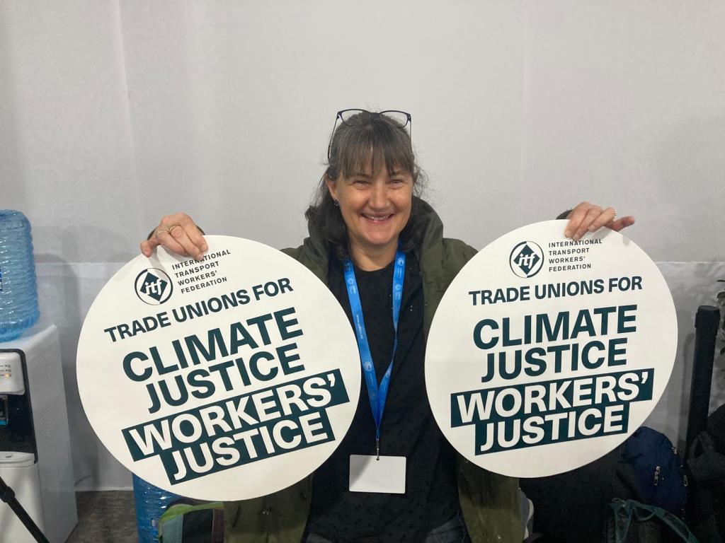 Guess what? They must have heard us because along came Kerry McCarthy MP, under secretary of state for climate for the UK government! We took the opportunity to have a chat about just transition, climate finance, enhanced redundancies and redundancy that is protected when new jobs are found but are on lower pay or that involve relocation.