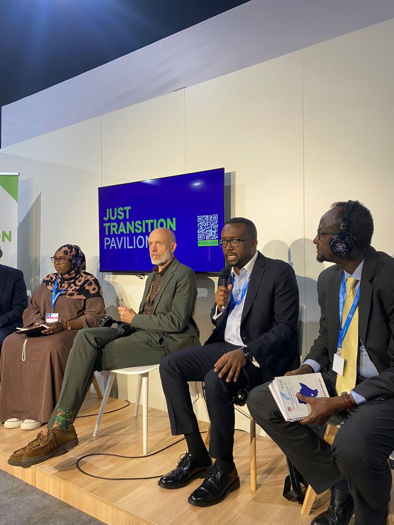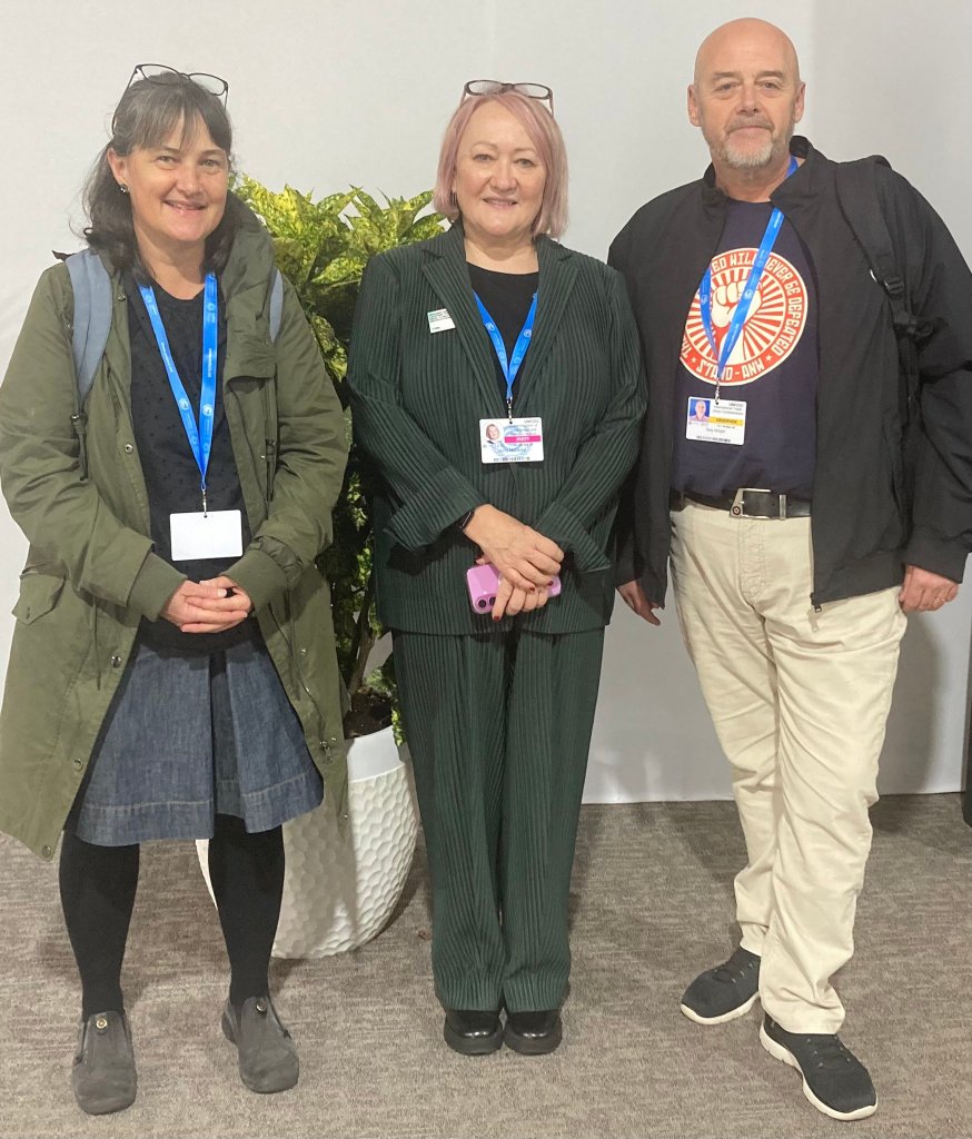 Back in the Just Transition pavilion I attended a presentation from Somalian union reps and government ministers. The government of Somalia have put their words into action. The Ministry of Labour have worked with the Ministry of Climate Change, the trade unions and employers to agree a just transition policy which will affect everyone and, as the minister stated, “We are ready to go, we just need the climate finance to be agreed at this COP”. Well done comrade Omar from Somalia for his successful collective bargaining!