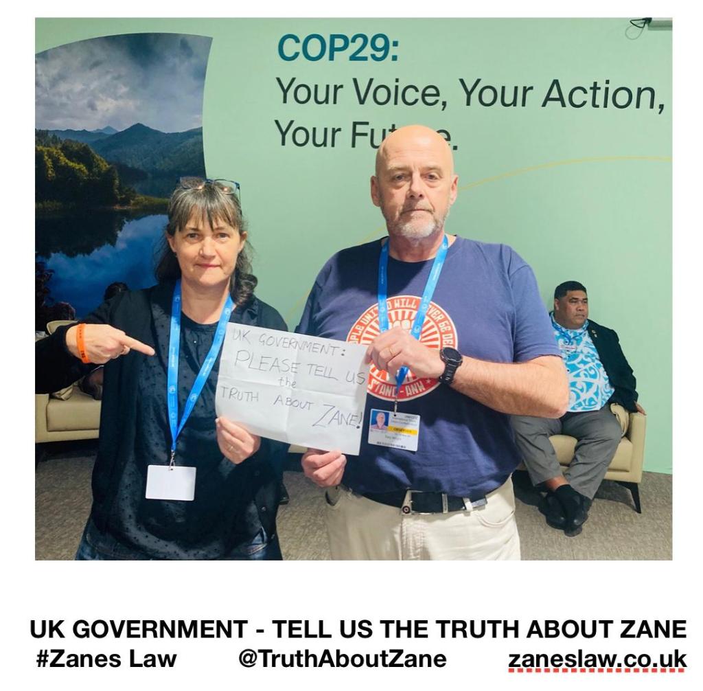After our meeting I headed to the UK pavilion for a free coffee with Tony, fellow TUC delegate from UNISON UK. We had planned to send out a picture from COP 29 to support the campaign for Truth About Zane – Truth About Zane; this is a campaign both our unions are affiliated to as we believe that it is vital the truth is known about exactly how a flood close to an old landfill site resulted in the death of eight year old Zane and severe injuries to Kye, his Dad. Such floods will become more common as climate change intensifies and we all want to try to prevent such deaths and injuries.