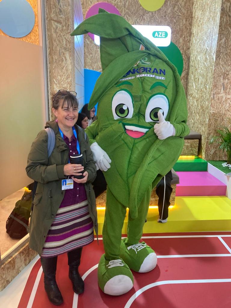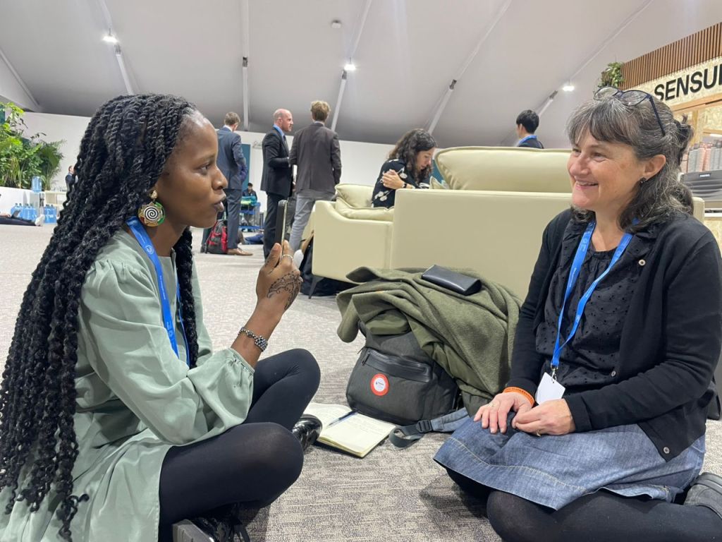 It’s really good to be at COP and meet people from different countries to find out more about each other. This is me talking to Darren from Uganda, who also works with children and teaches them about climate change.
