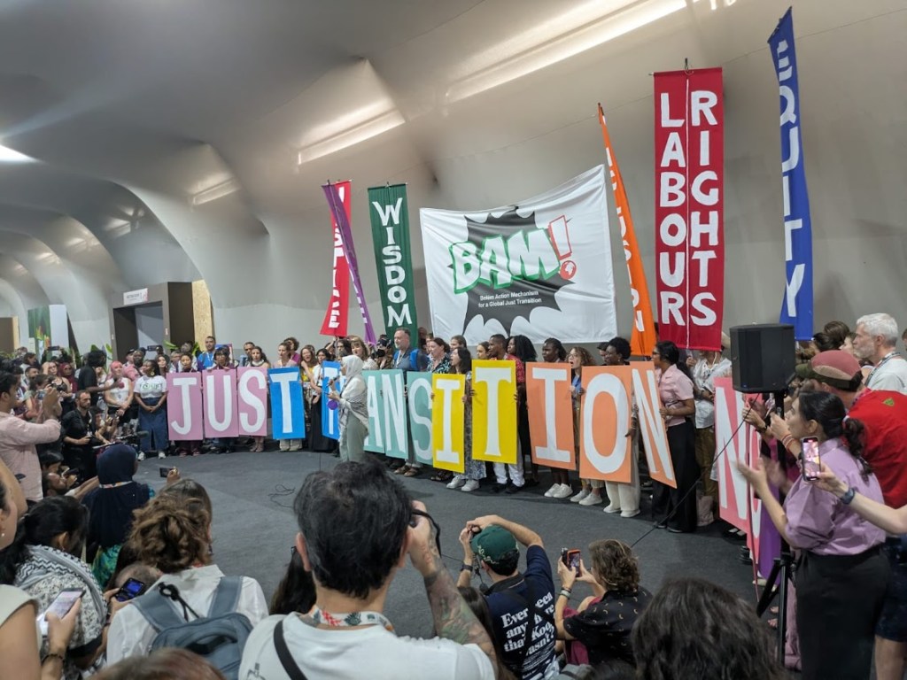 This, of course, is the essence of “just transition”; marginalised voices are empowered through a transition to a new way of doing things where young people, indigenous people, women, the global south and workers of all sectors are included and are key players in how to manage changes which affect them. All these groups, including the ITUC, are this year calling for the “BAM” (“Belem Action Mechanism”) on Just Transition. This would be a work programme as part of the UNFCCC COP process, which focuses not on talk and blah blah blah but on real action that protects people and planet (rather than the billionaires who are the ones causing and exacerbating climate change). We heard this evening that the G77 + China are supporting this!