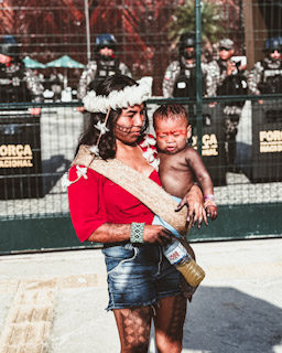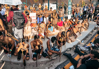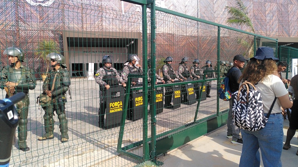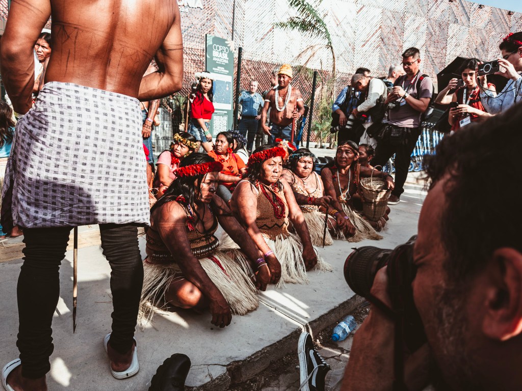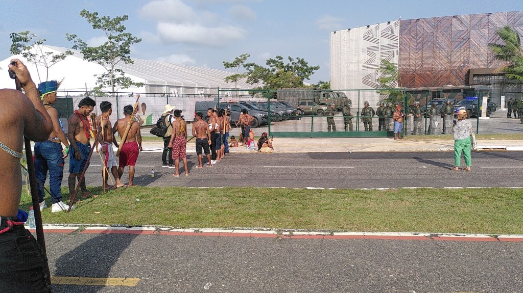 Having arrived at the COP to a welcome party of emergency services, riot police, mounted guards, military personnel and water cannon trucks, we then came upon the peaceful protest by Amazonian people and a scene so breathtaking it deserves a post of its own. With thanks to union rep Sami Della for the majority of these beautiful photos, although we all were witnesses! I’m going to let the pictures tell their own story…