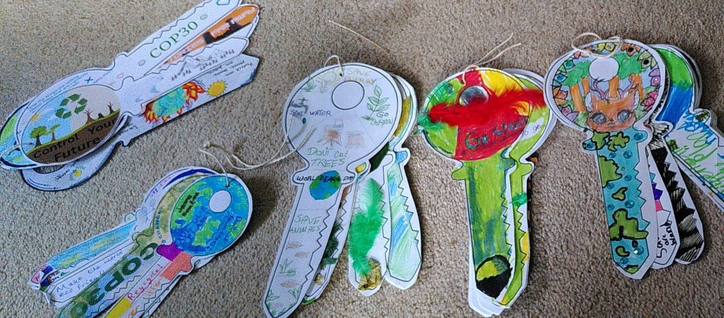 And some of us had messages to bring. Children and young people from local Brent schools worked on a project to design bunches of climate keys to unlock their futures. I need to hand these over!